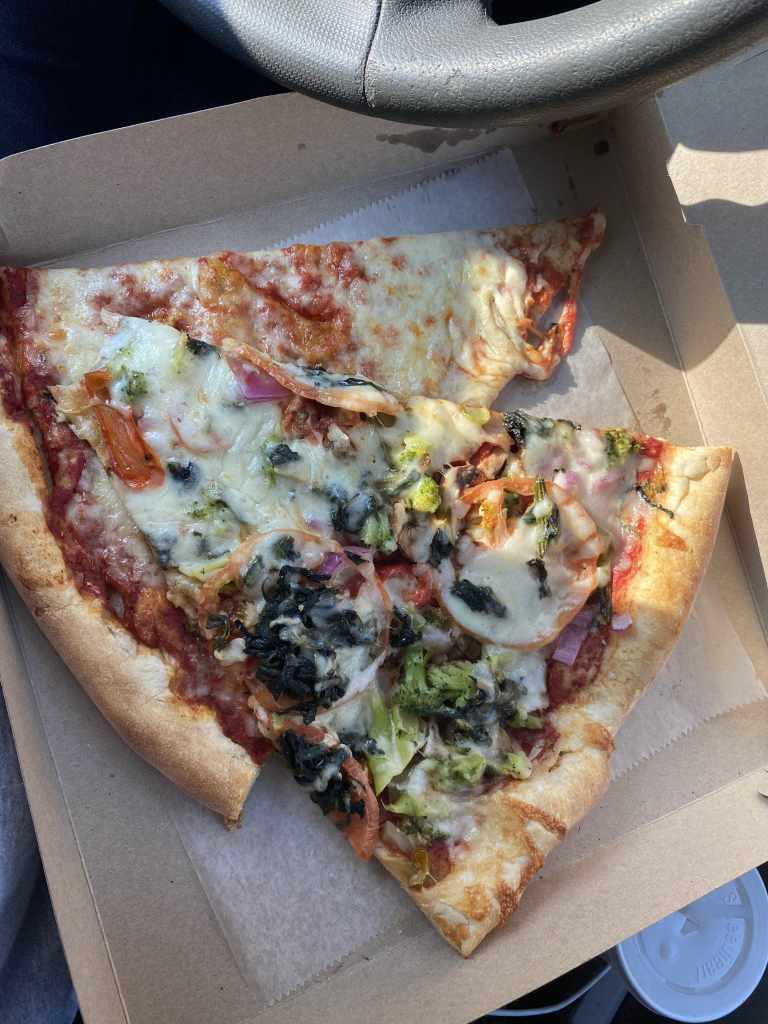 Last but not least, after the hike I had to grab something to eat nearby. After a nice, long hike, Chipotle in Fishkill usually hits the spot with a hearty vegetable bowl. Today I wasn’t feeling so healthy, opting for pizza instead at Sal’s Pizza and Pasta in Beacon. I was treated to two huge slices, and I only had enough room for one and a couple bites of the other, saving the rest for later.